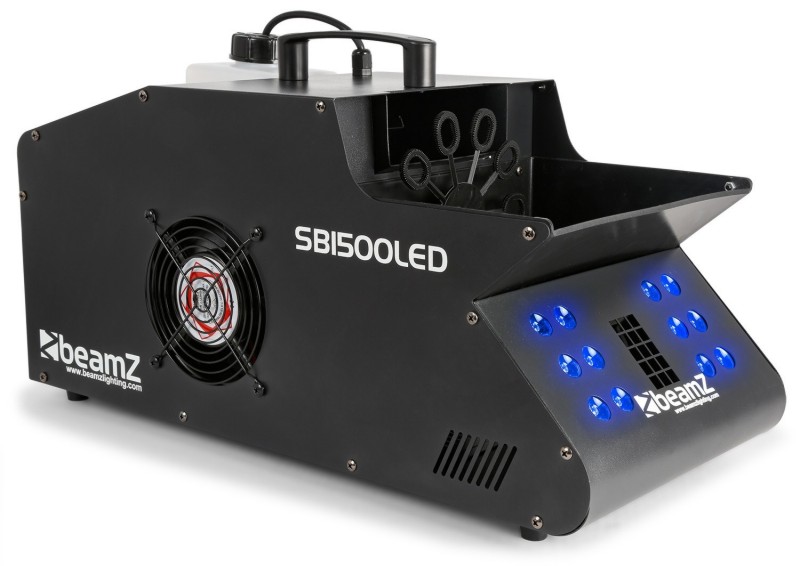 Tronios BeamZ SB1500LED STROJ ZA DIM I MJEHURIĆE RGB LED DIODE SB1500LED je kombinacija dima, mjehurića i 3-u-1 LED dioda ugrađenih u jedno kućište. Ventilator SB1500 stroja stvara mnogo mjehurića koji se svake minute pune dimom, a istovremeno stvara uzlazni vjetar koji omogućuje mjehurićima da se uzdignu visoko u zrak. Ovaj sustav ima 12x 3W LED dioda u snažnim bojama: crvenoj, zelenoj i plavoj. SB1500 se lako puni, jednostavan je za korištenje i jednostavan je za čišćenje. Na kraju predstave, nećete imati problema s čišćenjem zahvaljujući sustavu ventila za odvod tekućine. SB1500 ima dvostruke ručke i ugrađene kotače što olakšava transport. Iako je sposoban koristiti većinu vrsta tekućine za mjehuriće, SB1500 se najbolje uparuje s Beamz Bubble Liquid (160.575) i Beamz Smoke Fluid (160.582) za najzadovoljavajuću i najkvalitetniju zabavu s mjehurićima.