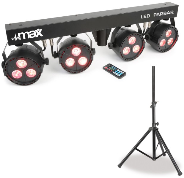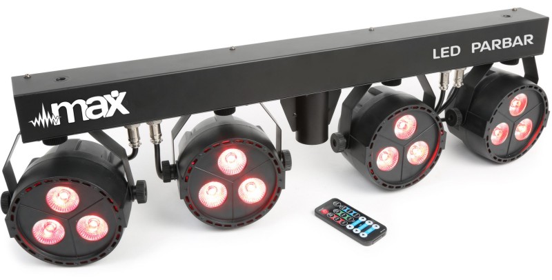 Tronios MAX PARTYBAR4 LED PARBAR 4-SMERNI 3X 4-U-1 RGBW Komplet od 4 LedPAR-a na T-traci s mogućnošću miješanja RGB s hladno bijelom bojom kako bi se postigle izvanredno lijepe jednobojne boje. Zahvaljujući 4-u-1 tehnologiji i vrlo velikoj snazi pojedinačnih LED dioda možemo postići vrlo visok izlaz s minimalnom količinom LED dioda. Leće na prednjoj strani savršeno miješaju sve boje bez stvaranja nijansi u izlazu. T-traka je izvedena u kompaktnom kućištu koje se može smjestiti gotovo bilo gdje. Sustav uključuje daljinski upravljač koji pojednostavljuje rukovanje i eliminira gnjavažu programiranja. Ili možete odabrati upravljanje vanjskim DMX kontrolerom putem XLR ulaza/izlaza. Robusno kućište posebno je dizajnirano za pozornice, diskoteke, noćne klubove itd.