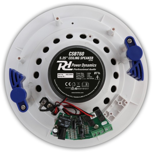 Tronios POWER DYNAMICS CSBT60 set od 2 stropna zvučnika, 1 s ugrađenim pojačalom i 1 pasivni koji se može spojiti na aktivni zvučnik. Bluetooth prijemnik idealan je za bežično strujanje glazbe na zvučnike. Visokokvalitetni i jednostavno ugradljivi stropni zvučnik prikladan je za ugradnju u gotovo svaki materijal. Stropni zvučnici pružit će čist i topao zvuk te imaju ugrađeni visokotonac. Idealan za korištenje u dnevnoj sobi, radnom prostoru, garaži, izložbenom salonu, restoranu itd.