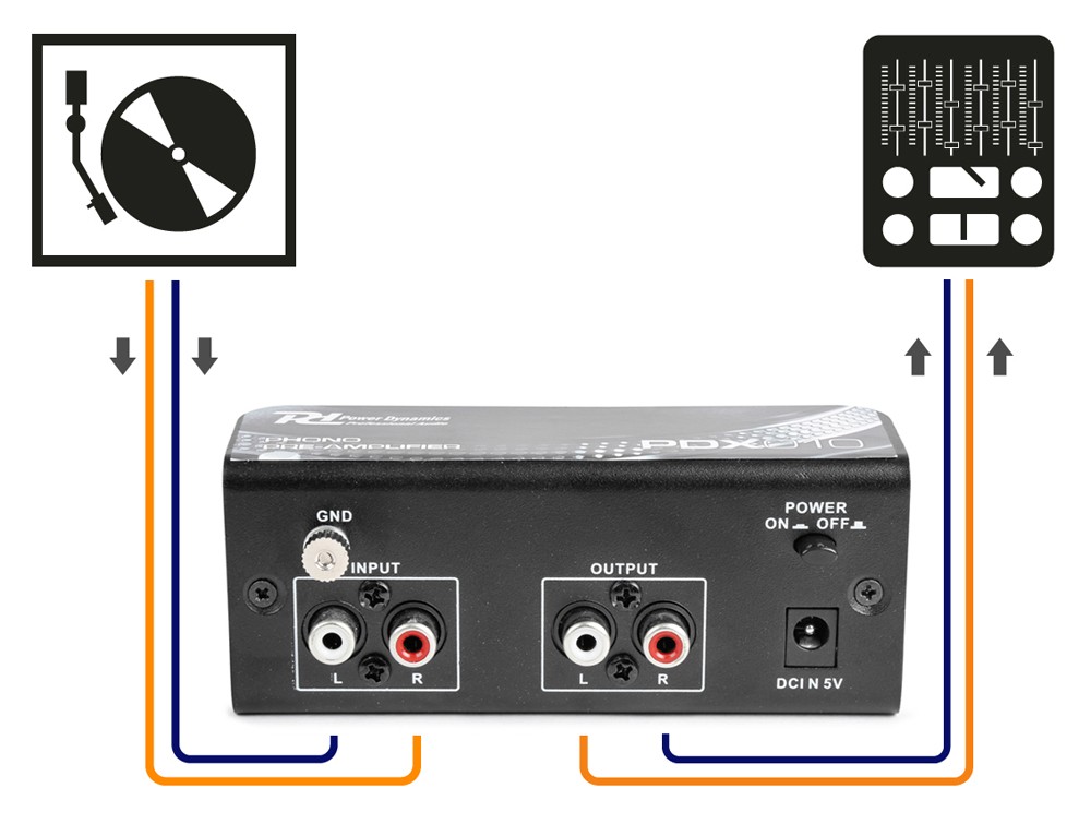 PDX010 Phono pretpojačalo idealno je za pojačala bez phono ulaza. Ovo pretpojačalo s RIAA korekcijom pojačat će slabiji signal s vašeg uređaja na normalan linijski signal. RIAA će znatno poboljšati zvuk. S ovim phono pretpojačalom možete ponovno spojiti svoje stare uređaje na moderni mikser.