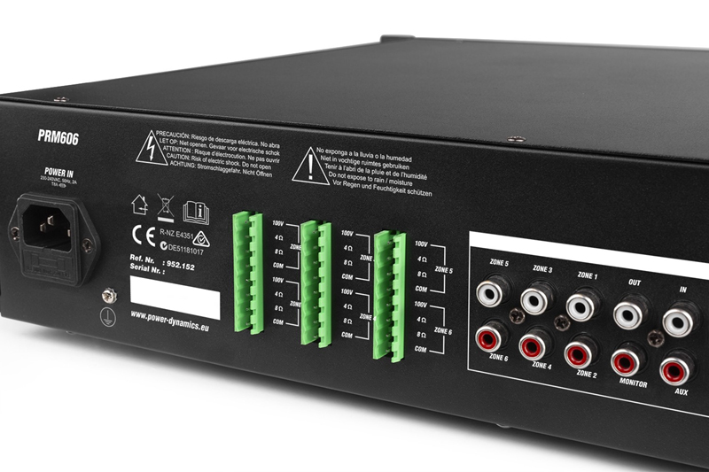 Zone outputs: 6x Speaker Terminal (100V / 4Ohm / 8Ohm / Com)