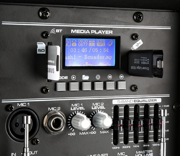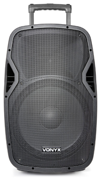 Profesionalni prijenosni zvučnik od 15″ i 800 W s daljinskim upravljačem, integriranim USB priključkom i SD utorom za reprodukciju MP3 datoteka. Ovaj “sve u jednom” sustav opremljen je BT prijemnikom za streaming zvuka i jednim UHF bežičnim bodypackom. Radi putem mreže ili ugrađene punjive baterije od 12 V te se stoga može učinkovito koristiti i vani. Dolazi s uvlačivom ručkom i kotačima. Na stražnjoj strani nalaze se dva ulaza za mikrofon i efekt jeke za sve mikrofone, AUX linijski ulaz, MP3 upravljačka ploča, kontrole za podešavanje tona itd. Ovaj cjeloviti sustav neophodan je tamo gdje je potrebna dobra reprodukcija zvuka.