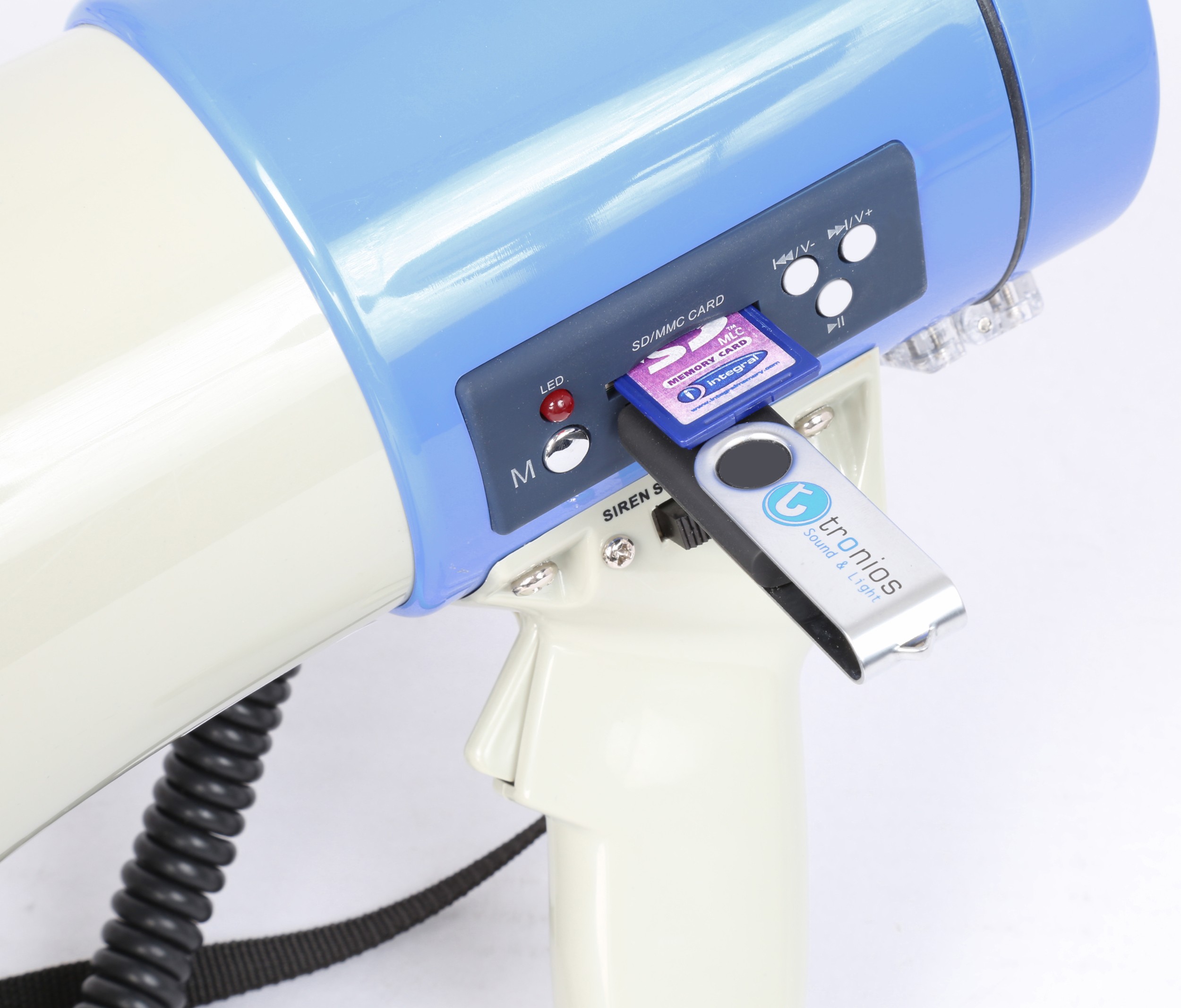Snažan megafon s ugrađenim pojačalom od 60 W s odvojivim mikrofonom s funkcijom pojačivanja zvuka na spiralnom kabelu. Ima USB i SD utore, funkciju sirene, kontrolu glasnoće i podesivi remen za rame. Domet 1,0 – 1,2 km ovisno o uvjetima rada.