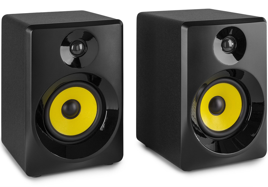 Ovi SM aktivni studijski monitori su profesionalni studijski monitori i prikladni su i za multimedijsku upotrebu. Ovi zvučnici dizajnirani su za proizvodnju ravnog frekvencijskog odziva za (kućno) studijsko snimanje, miksanje i mastering. Kontrole glasnoće, basa i visokih tonova nalaze se na stražnjoj ploči za prilagodbe na temelju vaših osobnih preferencija. SM serija ima analogna pojačala koja su ugrađena u lijevi zvučnik, dok je desni zvučnik pasivan, tako da je postavljanje jednostavno. Samo priključite lijevi zvučnik na izmjeničnu struju i spojite priloženi kabel zvučnika s lijeva na desno. Ovi Vonyx SM aktivni studijski monitori stvaraju novu razinu performansi u pristupačnim studijskim monitorima.