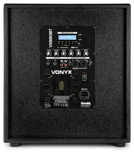 VX880BT set se lako postavlja i transportira. Ovaj set uključuje 15″ subwoofer i dva 8″ drvena stupna zvučnika. Oba stupna zvučnika opremljena su s 4x 2,5″ zvučnika i 1x 2,5″ visokotoncem. Ugrađeni BT prijemnik omogućuje vam jednostavno bežično strujanje glazbe s vašeg pametnog telefona ili možete koristiti ugrađeni MP3 player s USB i SD utorima. Ovaj aktivni set zvučnika prikladan je za mobilne DJ-eve, karaoke showove, drive-in showove, prezentacije itd.