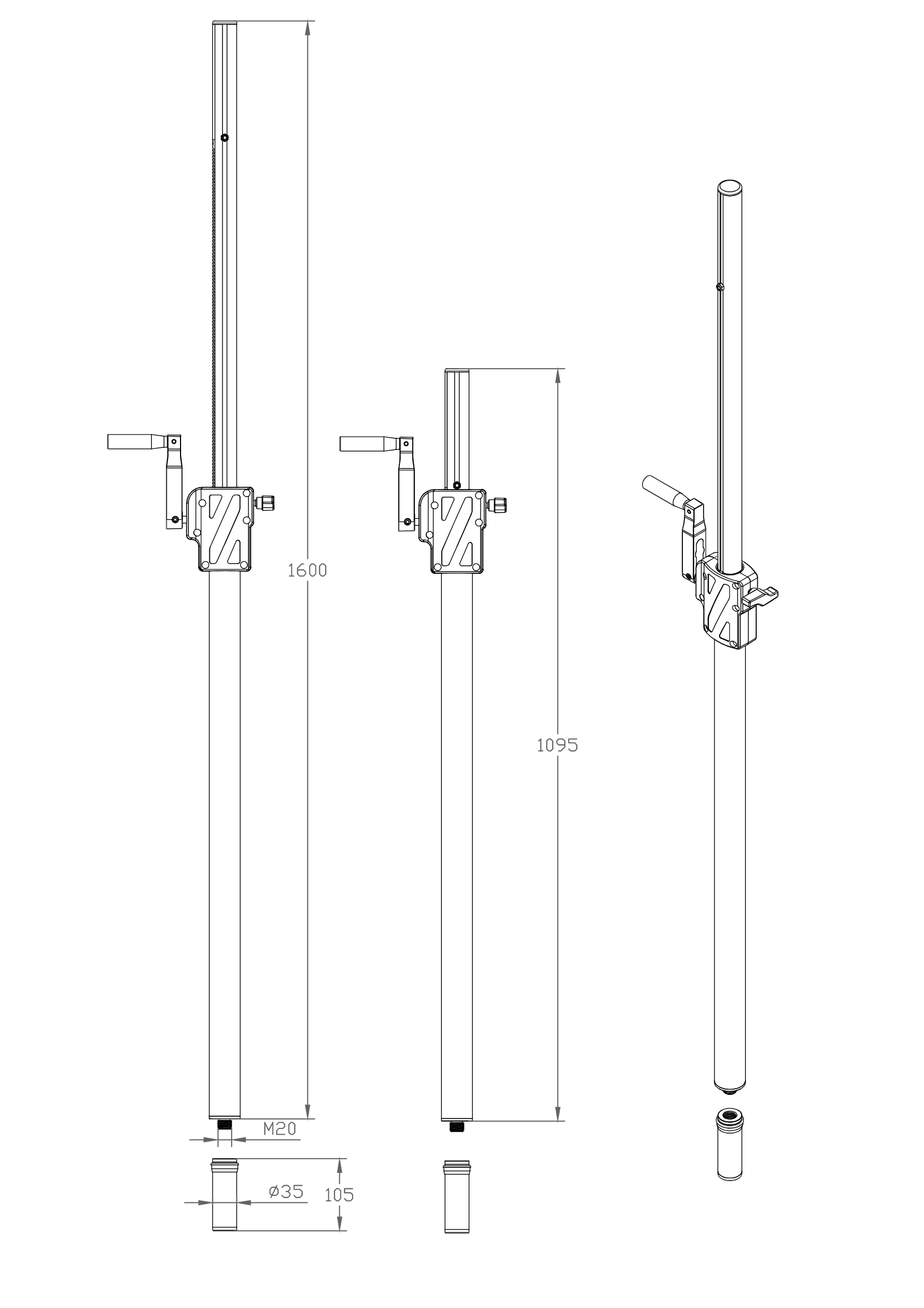Adjustable height 1095 – 1600mm