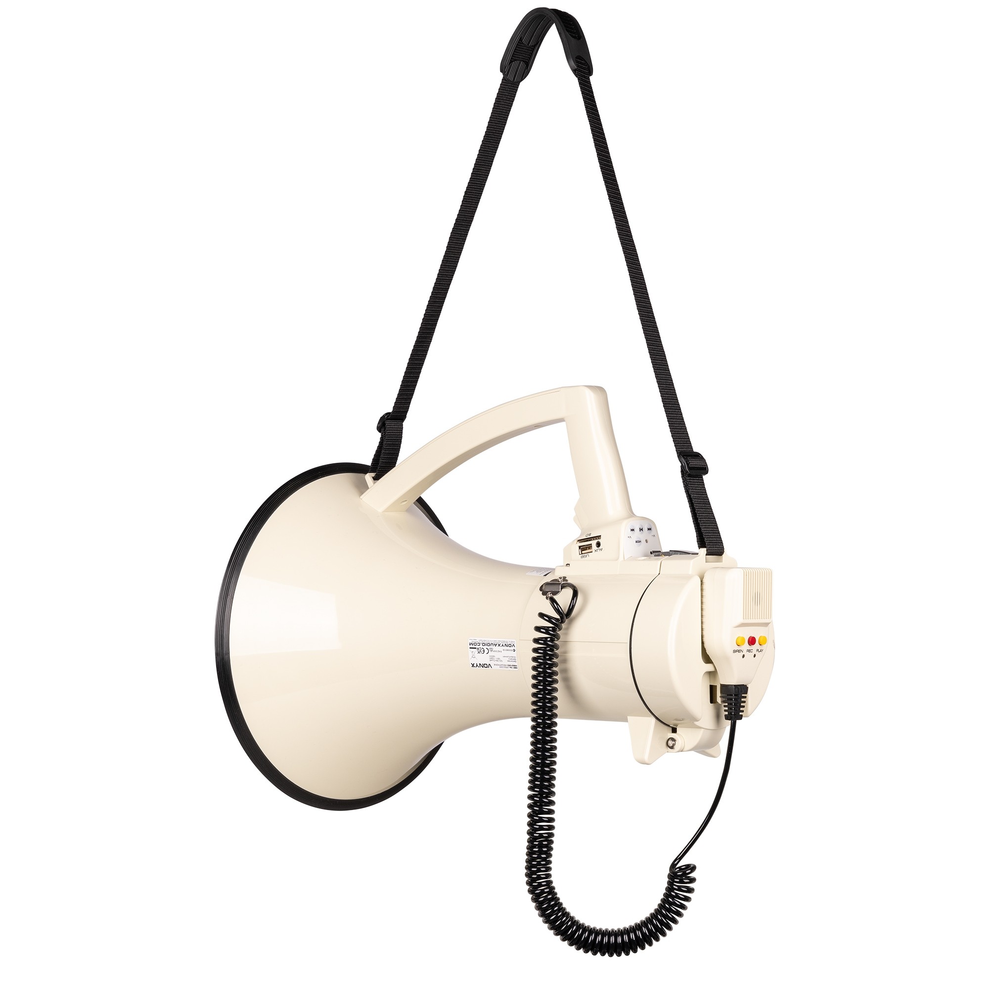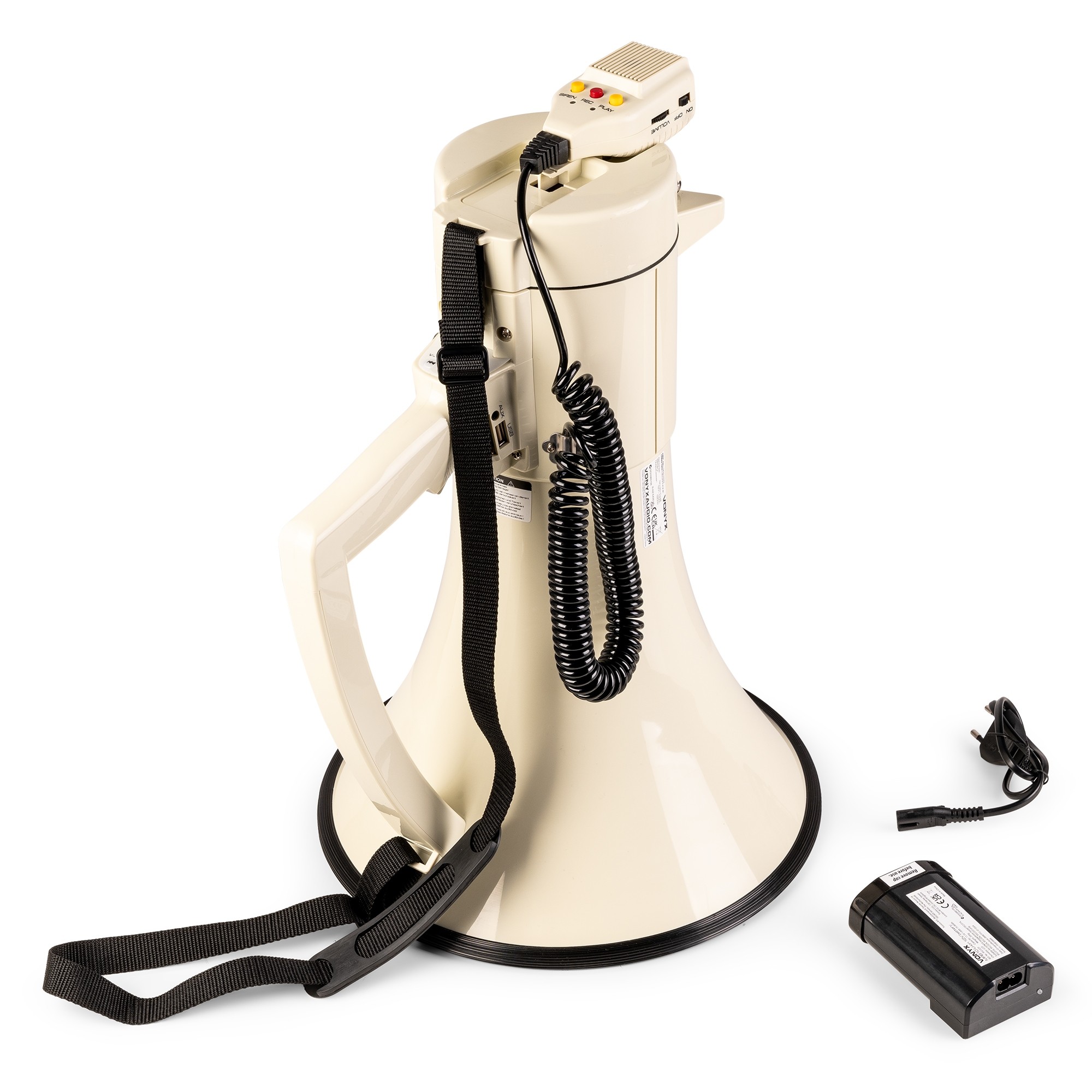 Included accessories: Handheld microphone (wired), Power cable